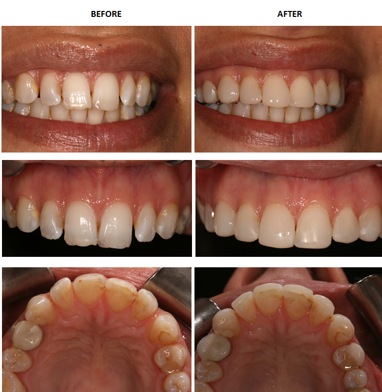 Bioclear is a minimally invasive & cost effective treatment using clear forms which are filled with a composite material matched to the shade of your teeth. The forms are removed leaving behind smooth contoured composite that has beautiful shines that is smooth to the touch. The form sits just below the gum line, meaning the teeth will appear to emerge naturally. The tight contacts achieved with this system means that the papilla (the gum in-between the teeth) is hugged back into place, revealing a healthy and youthful smile.